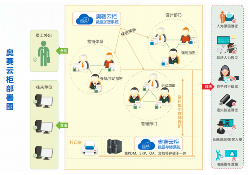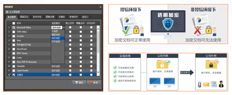 奧賽云柜的數(shù)據(jù)加密與加密可采用多樣化的靈活策略,可針對指定文檔格式進(jìn)行加密。解密外發(fā)可設(shè)置郵箱白名單(發(fā)送者白名單、接收者白名單),提高辦公對接效率。并可以通過手機(jī)App進(jìn)行在線查閱及解密,降低管理難度。