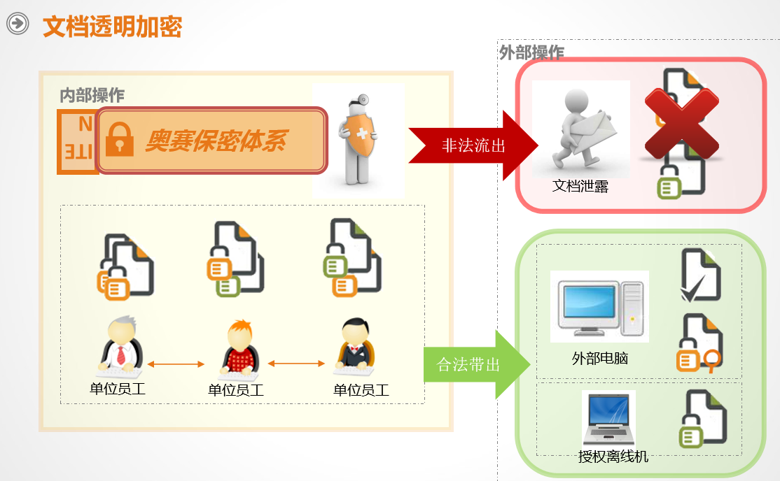 奧賽云盾采用先進(jìn)的文件內(nèi)核加密技術(shù),在無(wú)需人工干預(yù)、不影響員工辦公的前提下對(duì)數(shù)據(jù)進(jìn)行全程智能加密,在內(nèi)部環(huán)境可正常使用,脫離內(nèi)部授權(quán)環(huán)境則無(wú)法打開。根據(jù)實(shí)際業(yè)務(wù)需求可使用打開加密、修改加密、手動(dòng)加密、智能加密等靈活多樣的加密策略。
