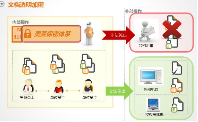 奧賽云盾采用驅(qū)動層加密技術(shù),進行文件加密,不改變員工操作習慣、不改變文件格式、不封閉公司網(wǎng)絡、不封閉外設(shè)端口,內(nèi)部流通自由正常。 加密文件在未授權(quán)的情況下脫離企業(yè)網(wǎng)絡,文件就無法正常訪問,形成“對外受阻,對內(nèi)無礙”局面!有效保障企業(yè)的數(shù)據(jù)安全。