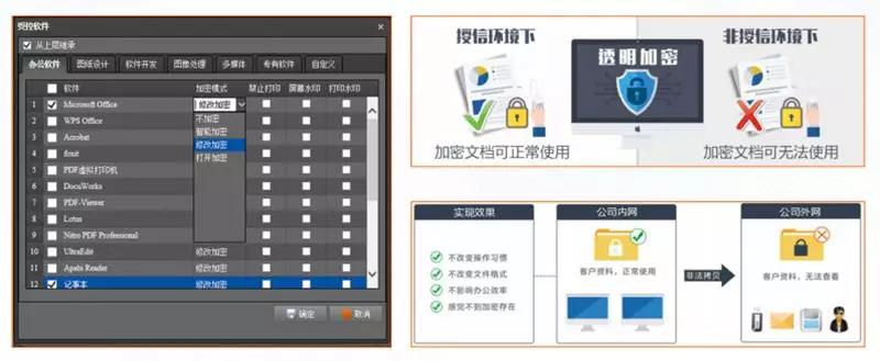 重要數(shù)據(jù)資料在加密基礎上,實現(xiàn)內(nèi)外部數(shù)據(jù)流轉管控。核心重要資料的非常規(guī)內(nèi)部使用,必須經(jīng)過解密審批或單獨授權。公司外部的流轉使用,可通過限定次數(shù)、限定時間、限定電腦、限定對象來進行管控。