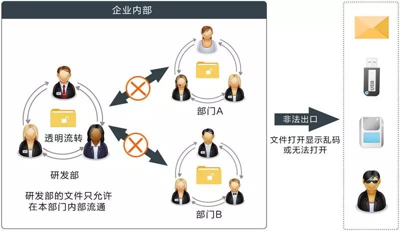奧賽云盾采用驅(qū)動層加密技術(shù),進行文件加密不改變員工操作習(xí)慣、不改變文件格式、不封閉公司網(wǎng)絡(luò)、不封閉外設(shè)端口,內(nèi)部流通自由正常。 加密文件在未授權(quán)的情況下脫離企業(yè)網(wǎng)絡(luò),文件就無法正常訪問,形成“對外受阻,對內(nèi)無礙”局面!有效保障企業(yè)的數(shù)據(jù)安全。