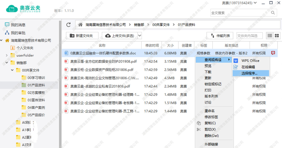 湖南展瑞隸屬于深圳聯(lián)瑞集團旗下子公司,國家高新技術(shù)企業(yè),擁有“AOSAI奧賽”獨立品牌,專注于為企業(yè)提供數(shù)據(jù)安全、文檔協(xié)同、私有云盤、遠(yuǎn)程辦公等一站式解決方案和服務(wù)。