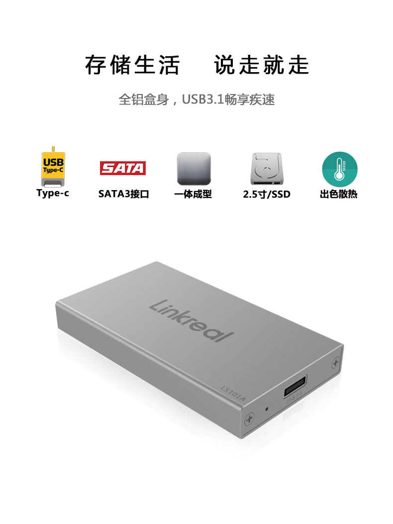? ? ? ?展瑞信息技術(shù)【linkreal】將于近日正式推出LS101A和LS201A兩種型號的高速移動硬盤盒。兩款硬盤盒均采用USB3.1 Type-C 接口,理論數(shù)據(jù)傳輸速度達(dá)10Gbps,為企業(yè)和個人移動數(shù)據(jù)存儲提供高速,安全,便攜的服務(wù)。