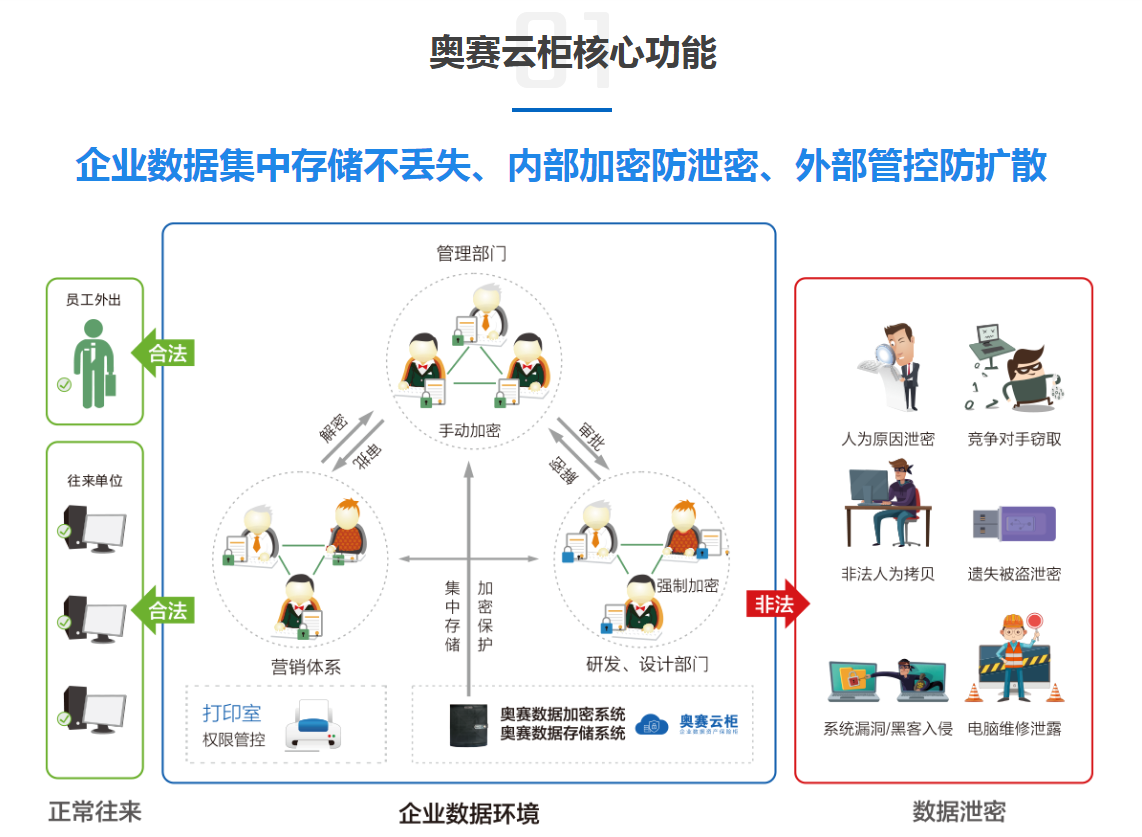 奧賽云柜,是一款實現數據集中存儲及加密保護的產品,軟硬件一體化方案,更安全、高效。